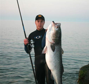 November 9th, 2009I have been fishing Northbar plugs since i heard about them. I love the way they dig down in the current and the swimming action. On Tuesday night i hit up a rip that i almost exclusively use Northbar bottle plugs and bottle darters. On this night i was catching bass on almost every drift up to 40 inches but most were like 34-36 inches. At around 12: am i was reeling in the Sand eel wooden bottle darter very slowly and Wham. After the battle my buddy went down to grab it and said go get your scale i think you may have gotten your 40. I catch a bunch of fish quite often but for some reason the big ones always elude me until Tuesday.